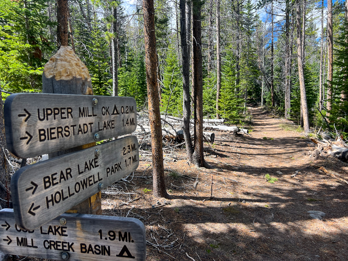 Roughly halfway up, you’ll see a sign marking 1.4 miles to Bierstadt Lake.