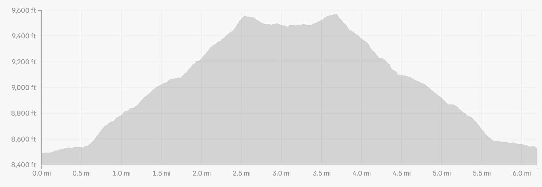 - Elevation Range: 8,491 ft (trailhead) to 9,567 ft